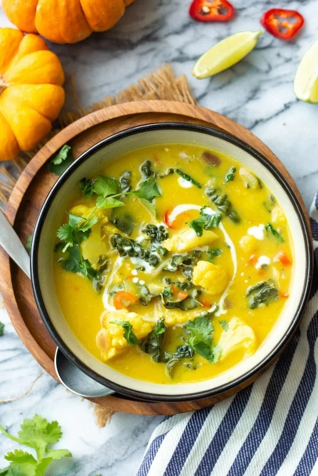 While the artificial flavoring you know in pumpkin pies or lattes is packed with added sugar that may cause inflammation in the gut, real pumpkin is high in fiber and prebiotics that are beneficial for digestion. This silky, rich Thai pumpkin soup is filled with rich spices and hearty vegetables. Add chili pepper for an added kick (and added health benefits).