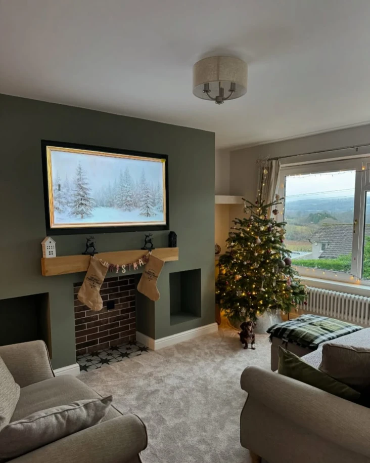 It’s not overly styled, just quietly inviting. The tartan throw, the understated Christmas tree, the flicker of soft lighting… you can almost hear the fire crackling and the dog snoring nearby.